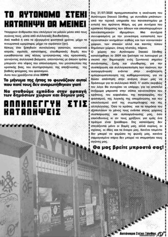 Στις 31/07/2025 πραγματοποιείται η εκκένωση του Αυτόνομου Στεκιού Ξάνθης –με συνοδεία μπάτσων– από την τεχνική υπηρεσία του πανεπιστημίου με εντολή του πρύτανη Μάρη, ως μια συνέχεια του κρατικού δόγματος…