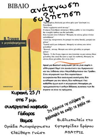 [Χανιά – 25/01] Βιβλιο ανάγνωση|συζήτηση από την ομάδα «Ελεύθερη Γνώση» & Βιβλιοπωλείο από την εφημερίδα δρόμου Άπατρις